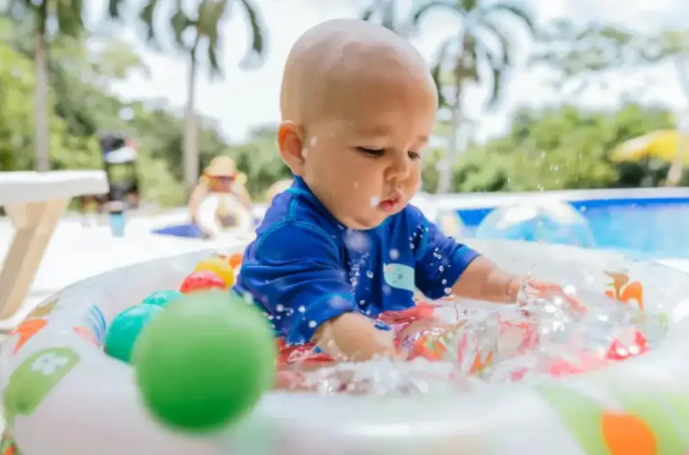 どんなに浅いプールでも、赤ちゃんから目を離さないことが鉄則です。