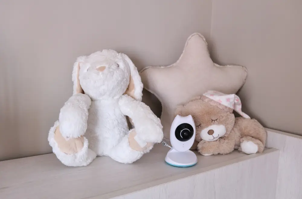 ベビーモニターの設置場所としては、赤ちゃんのベビーベッドのそばが一般的。カメラの画角を考慮し、赤ちゃん全体が映る高さ・角度を探してみて。