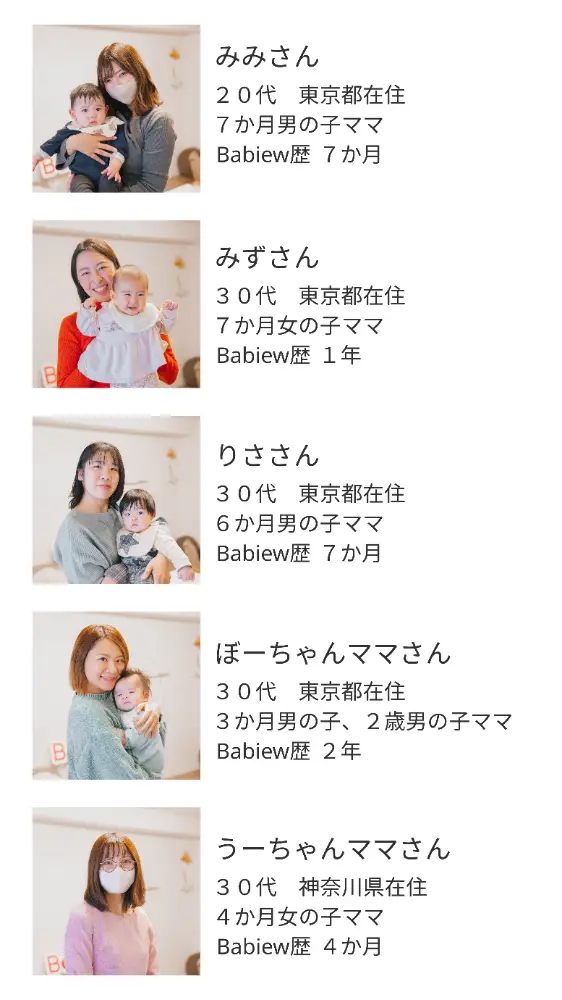 取材時点口コミ投稿件数:みずさん40件、みみさん9件、りささん19件、ぼーちゃんママさん 5件、うーちゃんママさん 19件