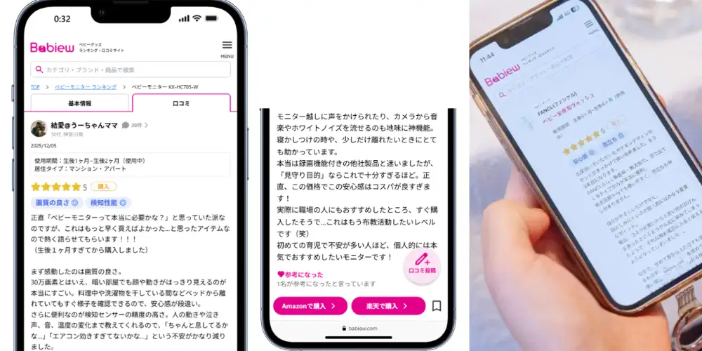 うー:「私はべビューを見て、生後1か月頃panasonicの見守りカメラを買いました。べビューにめちゃくちゃ熱い口コミも投稿してしまいました笑」